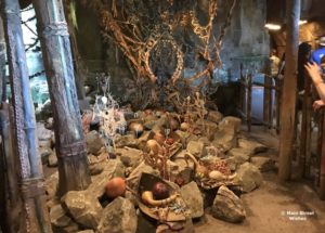 Eventually, the queue line will end up inside a big hut-like structure. The queue line continues to wind while you are inside and in true Disney fashion you don’t really know how much it twists and turns. Throughout the queue line you can look around and see all the fun details that Disney has included.