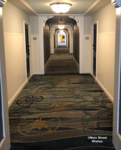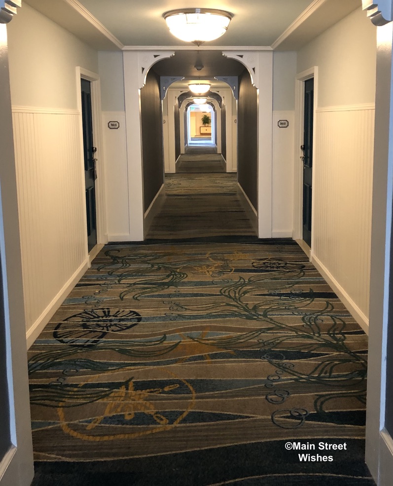 The rug is located in the hallway at Disney’s Beach Club Resort. The hidden Mickey is meant to be part of a bubble stream on the carpet and it’s one of the many hidden Mickeys that can be found at the Disney World Resort hotels. Each hotel has fun hidden Mickeys as part of the hotel decor, so it’s always fun to take some time to explore the resort and look for them.