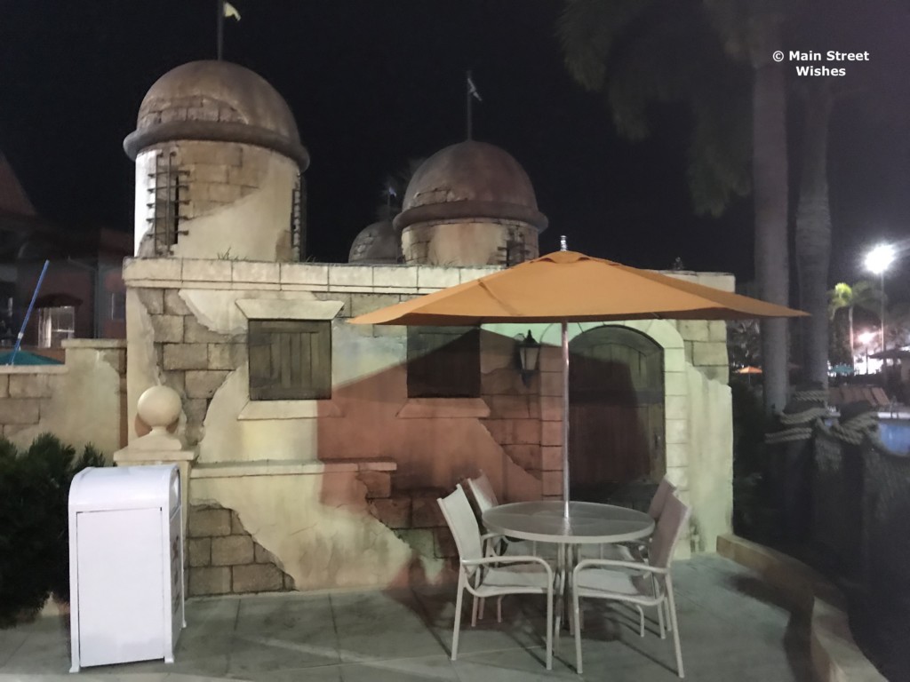 Congratulations to Linda, Doug, Rose, Steve, Addi, and Disney Dennis who all knew the stairs can be found at the main pool at Caribbean Beach Resort. The main pool area (Fuentes del Morro) is really nice. Disney designed it to look like an old Spanish fort and it is very detailed, for a hotel pool. One of the Cast Members there told me it is one of the most photographed pools on property and I can understand why. It’s beautiful! The pool has a zero entry section and also has 2 water slides. I think you could easily spend a good portion of your day at this pool.
