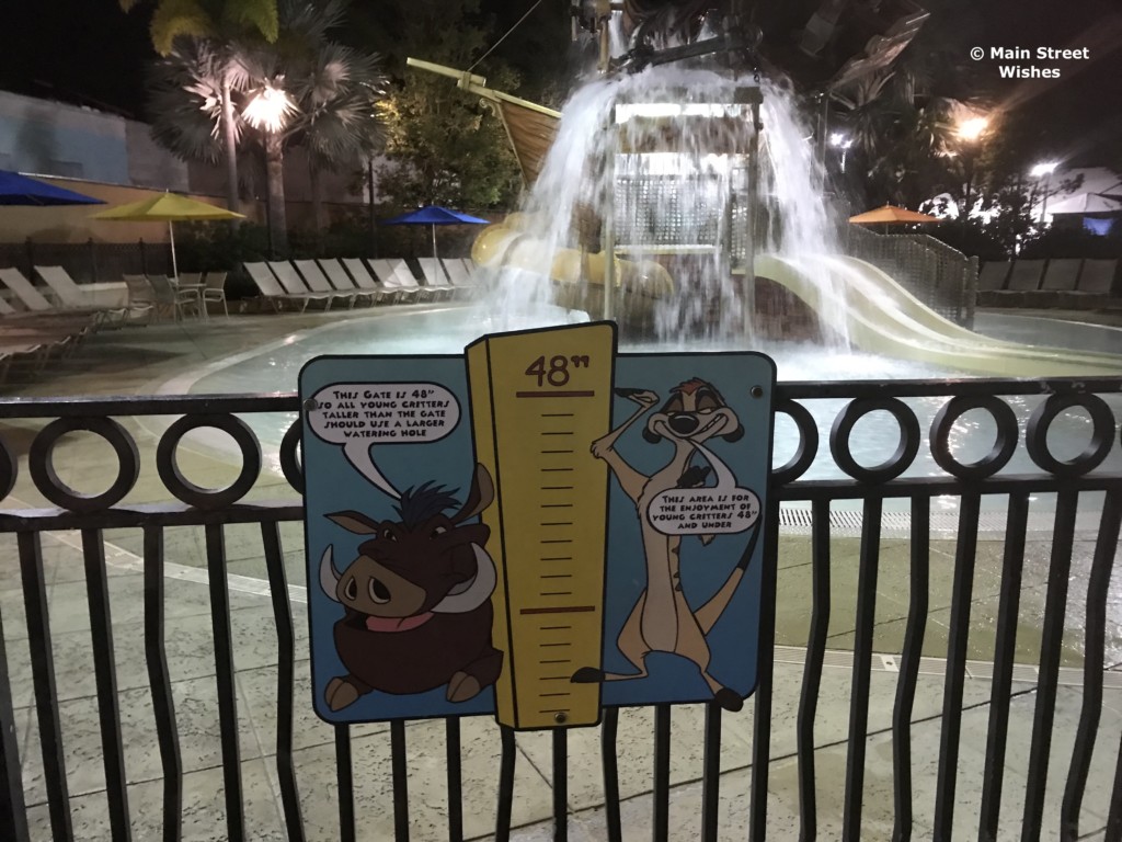 Near the main pool there is also a splash area for kids. It’s not just a little splash pool, it’s a whole playground splash area that gets water dumped on it every few minutes. It looks like a lot of fun for the kids.
