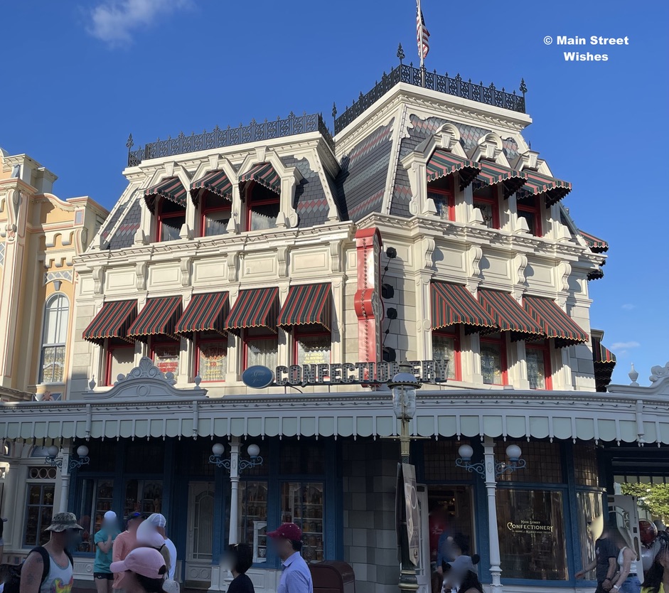 Congratulations to everyone who knew the windows are located above the Main Street Confectionery in Magic Kingdom. Cleary, this is a popular spot and for good reason. It’s one of the first things guests will see (and smell) when they enter Magic Kingdom and it’s hard to pass up stopping inside. The design of the building and store is inviting in and of itself. Designed to look like an old-fashioned candy shop, it’s a delicious stop while visiting Magic Kingdom.