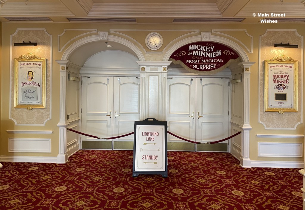 Congratulations to Kelly and Doug who both knew the date is located inside Town Square Theater by the entrance to Tony’s Town Square Restaurant and the Mickey and Minnie meet and greet. We were waiting in line for the meet and greet when I noticed the date on the floor and took the picture. The earlier you can get in line the better, the line tends to get pretty long, especially because the characters are meeting in their 50th Anniversary outfits. We took advantage of the early entry for resort guests and ended up being the first in line. If you are first in line the characters will come out of the meeting room and walk your kid(s) back to the room hand-in-hand. The whole experience was really cute and it’s a bonus that you get pictures with them in their 50th Anniversary outfits.