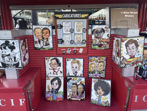 Sunset Boulevard is near the front of the park and is the path you want to take to get to Tower of Terror. In addition to the popular ride, shopping and dining are also located in this area. The dining includes quick service and some places to grab snacks. During my last trip there I found a caricature cart on Sunset Boulevard and decided to get some souvenir caricatures. I’ll go into more detail in a review post, but the artists drawing the caricatures are very talented and the pictures came out great.