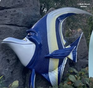 Congratulations to everyone who knew that the fish is located in EPCOT. Specifically, he can be found in front of The Seas with Nemo and Friends, which is right by the Coral Reef restaurant. The fish is Gill from Finding Nemo, the leader of all the fish in the tank at the dentist’s office and the one who helps Nemo get back to the ocean. This whole area outside the building is really cute and a good photo opportunity. There are quite a few characters from the movie, including the seagulls who move and say “Mine.”