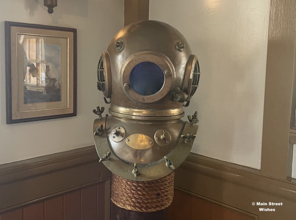 Congratulations to Caroline, Michale, and Kat, who all knew the ship can be found at Columbia Harbour House. This quick service location is located in the Liberty Square section of Magic Kingdom and has a maritime theme. It’s not hard to tell the theme when you look around the restaurant. There are plenty of maritime artifacts that decorate Columbia Harbour House and one of those items is the ship in the above picture. That ship can be seen from both levels of the restaurant, as it is above the food ordering area. Upstairs there’s a giant wheel that would be used to steer a ship, as well as other ship models and pictures. Downstairs is an old diving helmet, a carved figure that you would see on the front of a ship, and other items related to the maritime theme. There’s quite a bit to see here, so after you finish eating it can be interesting to take a stroll around and look at all the decorations.