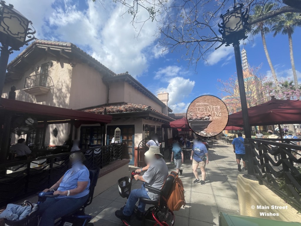 The Hollywood Brown Derby is located in Hollywood Studios and themed after the original restaurant in California of the same name. Inside is impressive, with big archways and large chandeliers hanging overhead. Just like the original restaurant, there are drawings of famous faces hanging throughout the dining area and the lobby. There are a variety of items on the menu, including the famous Cobb Salad, which is rumored to have been created in the kitchen of the Hollywood restaurant late at night. In addition to the inside dining area (reservations recommended) there is also an outdoor dining area at the lounge. Reservations are not taken here, but there is a walk up list you can put your name on and they will text you when your table is ready. I’ve been to the lounge twice and both times it was a very nice experience.