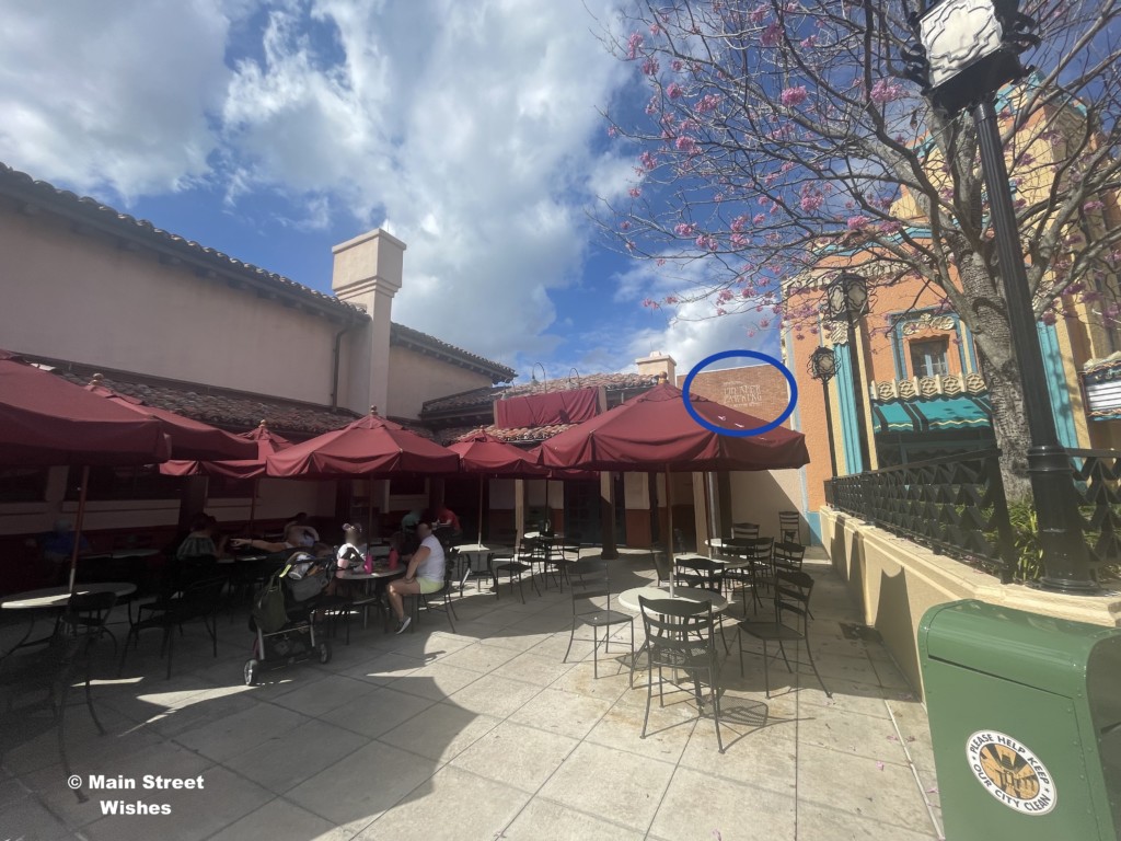 The popular guess for the sign was the Muppet Vision 3D building, which makes sense, but that’s not where this is located. The sign is actually located on the same building as the Hollywood Brown Derby. It’s around the corner from the outdoor dining area of the lounge. I can understand why people thought it would be at the Muppet’s building, but that’s one reason I love looking for pictures for this feature, I notice new things when I look up.