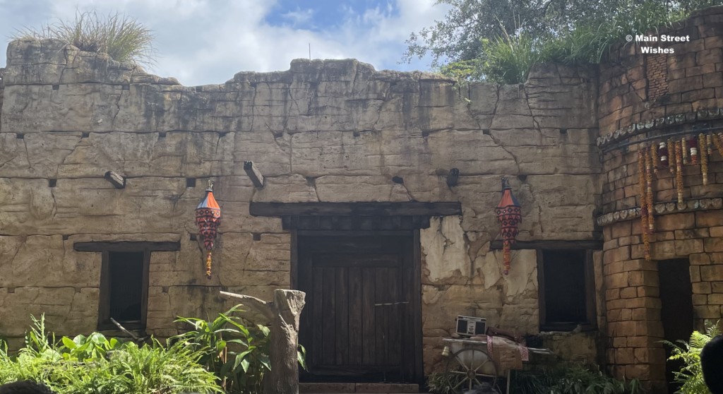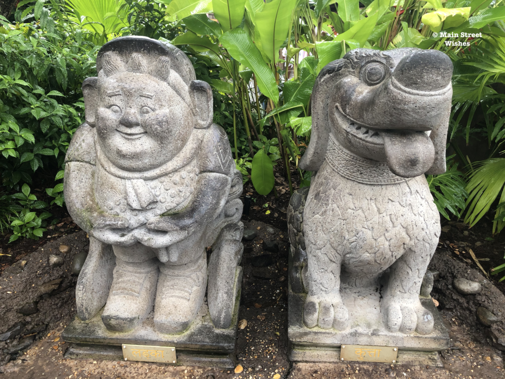 Congratulations to Steve, Kathy, and Judy, who all knew that the decoration can be found at the Feathered Friends in Flight! show at Animal Kingdom. The decoration is located on the wall to the main entrance for the cast members on the stage. To see the show head to the Asia section next to the Yak and Yeti restaurant. You will see statues of Russell and Dug from up, which is a cute photo opportunity.