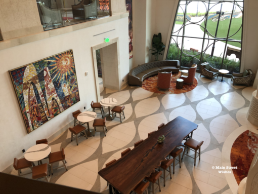 There is no gift shop in the new building, so you have to go over to the old lobby/main building to visit the gift shop, Panchito’s Gifts and Sundries. Disney connected the Gran Destino Tower and the old lobby with a winding hallway, so you don’t have to go outside to get to the El Centro. The entrance to the hallway is located on the lower lobby level by the Barcelona Lounge. It brings you to the old lobby area in El Centro where there are a few dining options: El Mercado de Coronado, Cafe Rix, Maya Grill, and Rix Sports Bar & Grill.