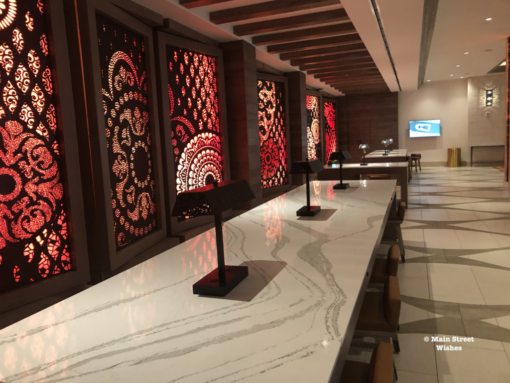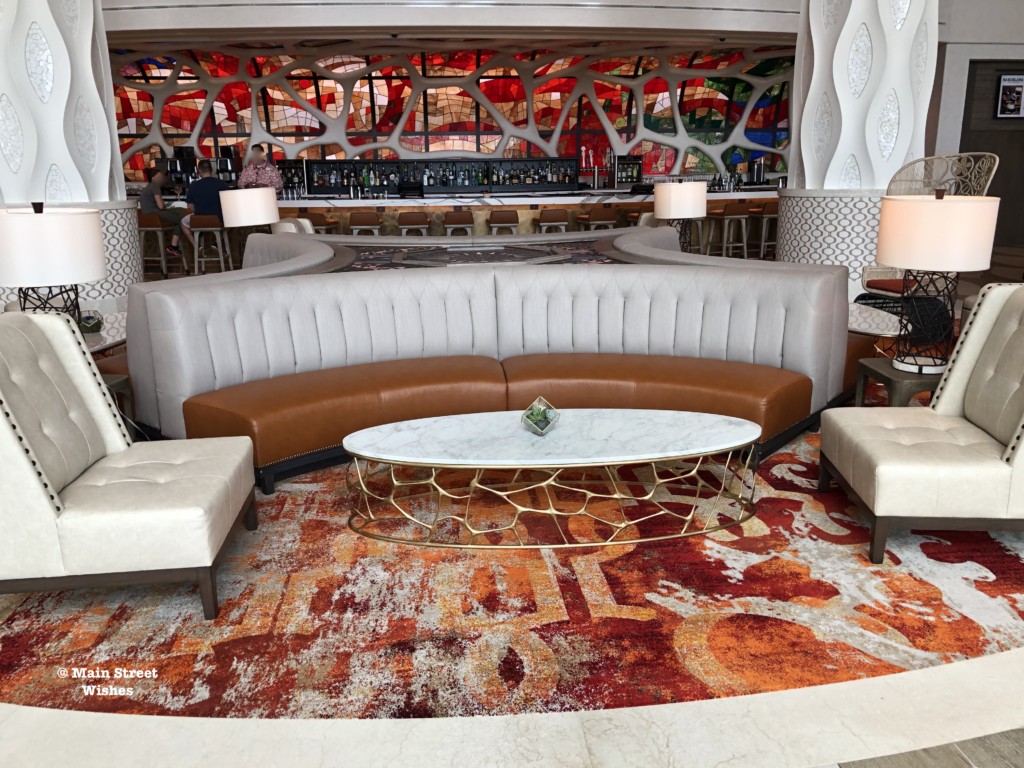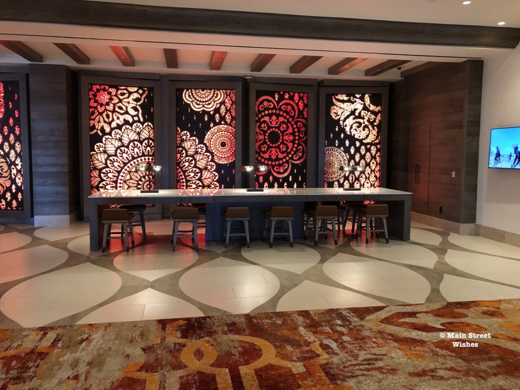 Located to the left when you walk in are two very long tables that have some charging ports. It’s a very inviting area to sit and charge up your devices while you wait for your room. There are also sitting areas with very comfy looking chairs and tables. Areas like these are great when you get to the resort before your check-in time and they don’t have a room ready yet.