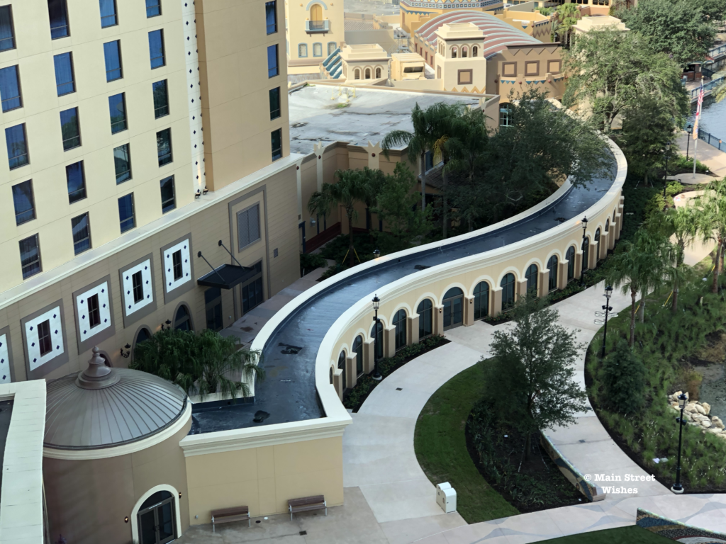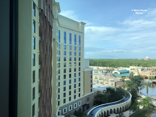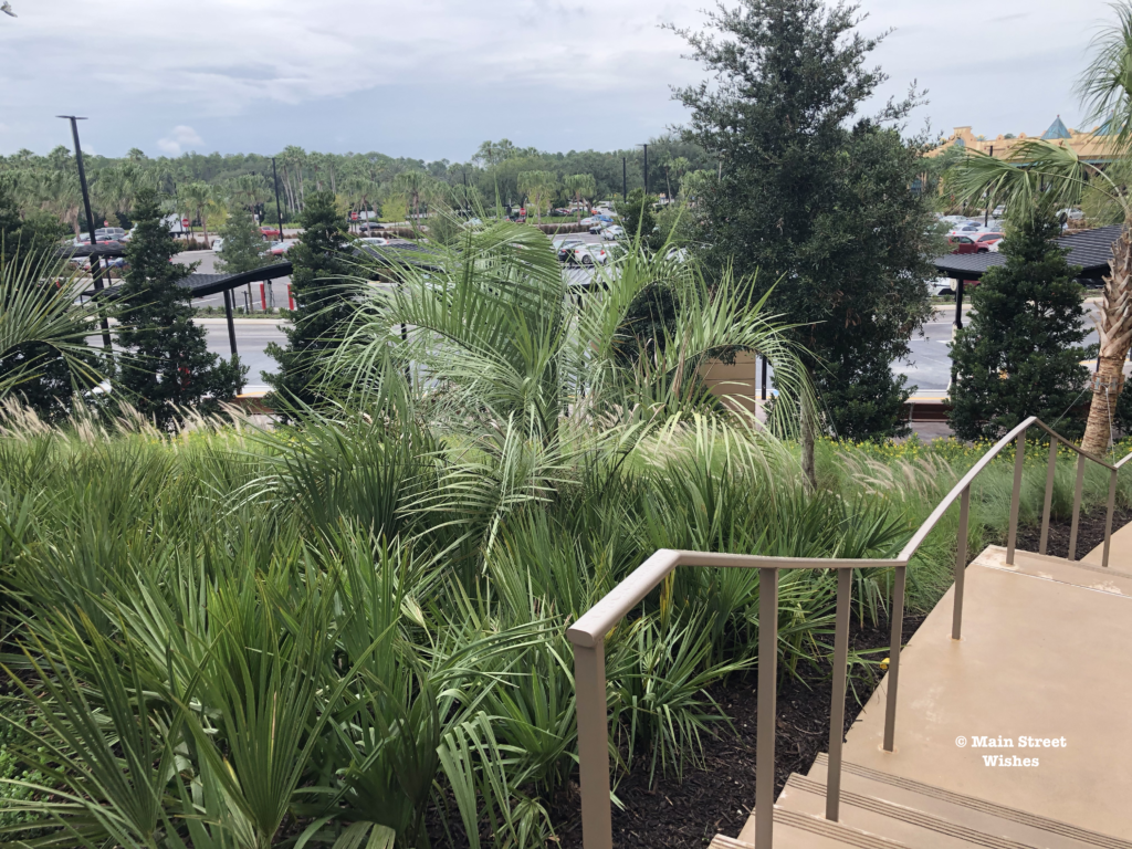 One of my favorite things about this hotel is the walk to the buses. After coming back from a long day at the parks it’s nice to have a shorter walk to your room. The bus stop is really close to the tower, which is a big plus for staying here, in my opinion. When you walk out of the lobby head to your right. You can either walk down the stairs or use the ramp that goes to the buses. It’s one of the shortest walks I’ve had to a bus, especially at a moderate resort, and my feet appreciated that at the end of the day!