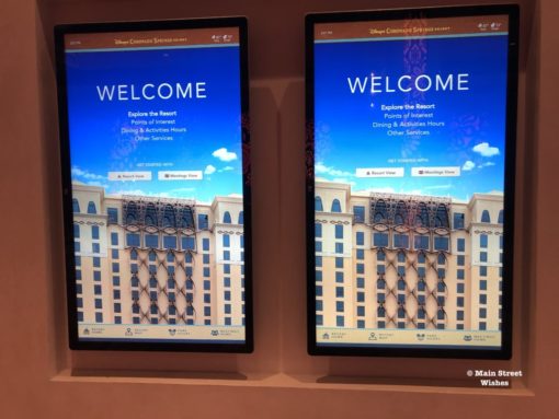 Also in the lobby are touch screens guests can use. These screens can be used to give information about the resort, such as dining and activities.