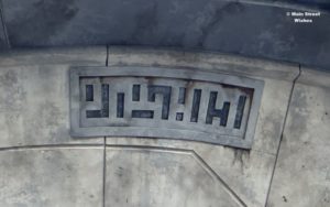 Congratulations to Melanie, Kevin, Randy, and Lucie who all knew these symbols were in Galaxy’s Edge at Hollywood Studios. Specifically, this picture was taken by the Millennium Falcon in Galaxy’s Edge. It’s located on the top of the building where the ride Millennium Falcon: Smugglers Run is located. Since they’re so high up, it’s easy to miss seeing them on the building, especially with all the details in Galaxy’s Edge.