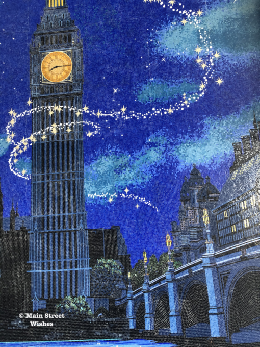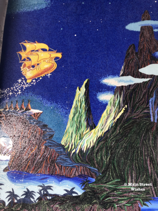 Congratulations to Michael Jr. and Matthew, Poco, and Robbie who all knew the picture is located at Disney’s Riviera Resort. This is one of Disney’s newest resorts and it’s absolutely beautiful. There is a lot to see when visiting Riviera Resort and one can’t miss suggestion I have are the mosaics. They are located on the grounds in a covered area with a fountain. Inside are two beautiful mosaics that both wrapped around the inside of the arch and over the fountain. One is themed after Tangled and the other is themed after Peter Pan. The colors and details in the mosaics are stunning. It would be very easy to sit there for a while, listening to the fountain and looking at the mosaics.