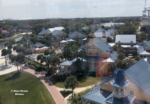 Another fun feature of this hotel is that it’s on the Skyliner route. So when you’re done exploring you can hop on the Skyliner for a fun ride around property. The last time we visited the Riviera Resort we took the Skyliner to Caribbean Beach and changed there to go to Hollywood Studios. It was a fun ride and a great way to see some of Disney’s hotels!
