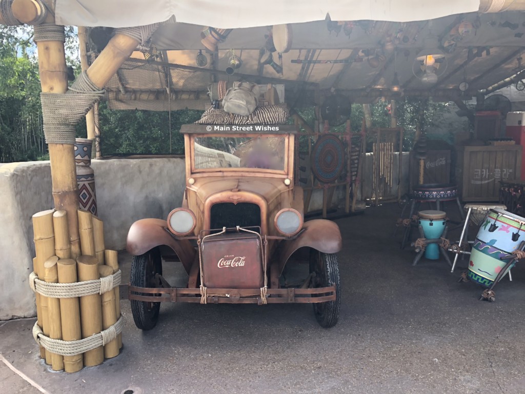 - Drums – The area next to the Refreshment Outpost has drums that guests can play. This is also where the car in the picture is located.