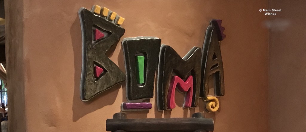 The letter in the picture is located at Boma – Flavors of Africa, specifically the letter is located on the sign of the restaurant where guests check in for their reservations.. This restaurant is easily one of our favorites to visit when we are in Disney World. It is located in Animal Kingdom Lodge, Jambo House. The decor in the restaurant matches the design and inspiration for the rest of the hotel. From the ceiling to the salt and pepper shakers on the table, the decor is great and definitely fits with the design of the restaurant.