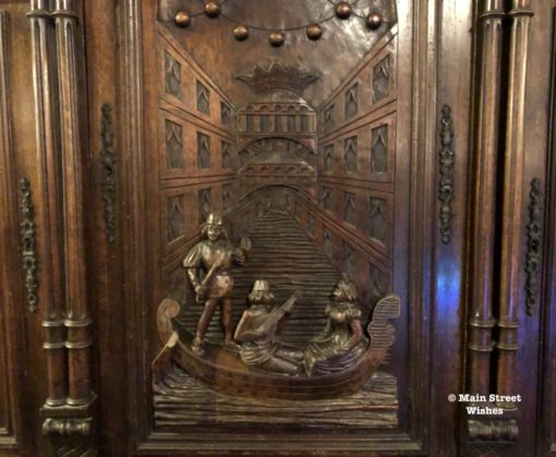 The picture can be found carved in a piece of furniture in the Pirates of the Caribbean gift shop. This was honestly the first time I had noticed it, but I’ll definitely be looking for it the next time I exit the ride! Merchandise was located near the piece of furniture that the picture is carved in and that’s how I noticed it.