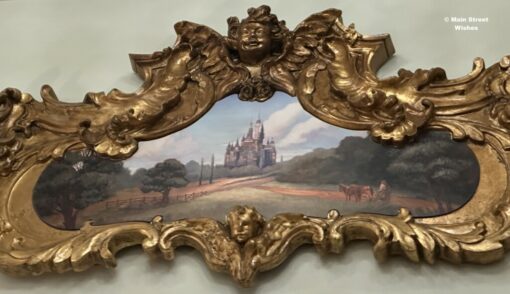 Also in the lobby are what look like paintings of different Disney castles. Each picture of a castle is inside an ornate frame, so gives the appearance that they are from a carousel. In addition there are models of an old wooden roller coaster, as well as a carousel. The carousel sometimes moves, but not all the time, so it depends if you catch it at the right time.
