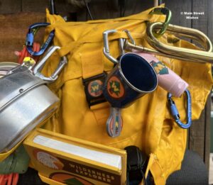 There are several things hanging off the backpack, so it could be a fun thing for the kids to check out and get a picture in front of before you hop in line. In addition to the backpack there are other things to see in this meet and greet area. Guests will see a wagon with different items and a Club Notes board with different notes attached to it.