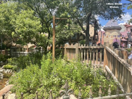 Congratulations to Lisa H, Caroline, Gina, Lori, and Gina B, who all know the water feature is near the Rapunzel area in Magic Kingdom. As Caroline pointed out, this is the area where guests can hunt for Pascal on either side of the bridge. It’s a nice area in the connects Liberty Square and Fantasyland. Since it’s in an area that is basically just a passthrough, it’s easy to walk by and miss it, but it’s actually a pretty area and wouldn’t make a bad backdrop for a picture.