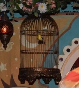 The birdcage is located at Daisy’s meet and greet at Pete’s Silly Side Show, which is in Storybook Circus at Magic Kingdom. Here guests can also meet Minnie, Donald, and Goofy. There are two queue lines to choose from. One line leads to Daisy and Minnie and the other line leads to Donald and Goofy.
