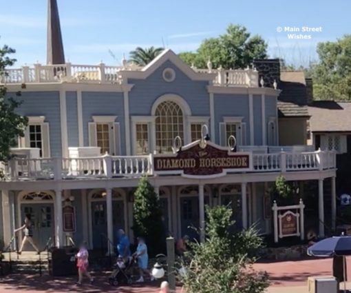 The stairs in the picture can be found at The Diamond Horseshoe in Magic Kingdom. Specifically, the restaurant is located in the Liberty Square part of the park near Liberty Tree Tavern. This “all-you-care-to-enjoy” restaurant serves both lunch and dinner ($45 per adult and $24 per child ages 3-9). Themed after an Old West music hall, this is fun place to enjoy a meal.