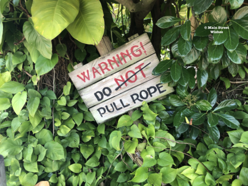 The display is located near The Indiana Jones Epic Stunt Spectacular at Hollywood Studios. It’s supposed to be a dig site and if you listen closely, you can hear noises coming from down below. Notice the rope? Well, right next to this area is a sign that says “Warning! Do Not Pull Rope” and you should definitely pull the rope. That’s all I’m going to say. 🙂
