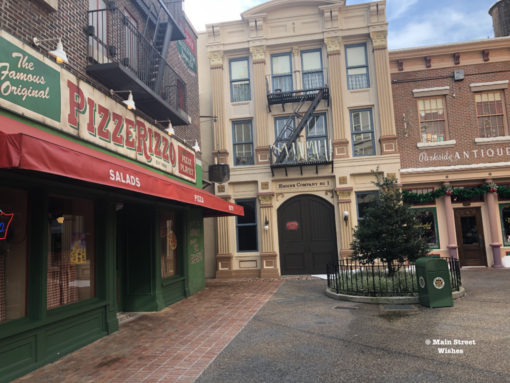 The building can be found right past PizzeRizzo in Hollywood Studios. There are a couple of buildings like this in Hollywood Studios, where it looks like people live in the building. It’s fun to look at the detail and see what you can spot. If you look in the windows of this building you will see different curtains and some flower pots. Another feature is the firehose draped over the balcony. During the holiday season Santa can be seen climbing the fire escape.