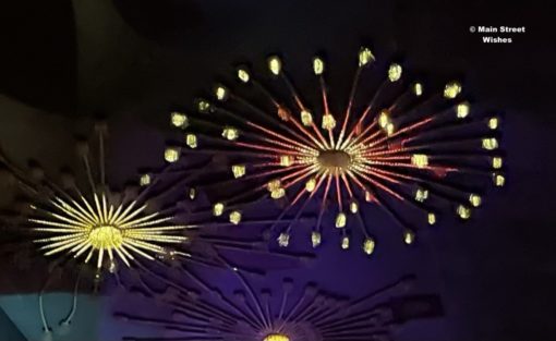 These adorable fireworks are in the Mexican Pavilion on the Fiesta Tour Starring The Three Caballeros. They are located on the ceiling and are animated !