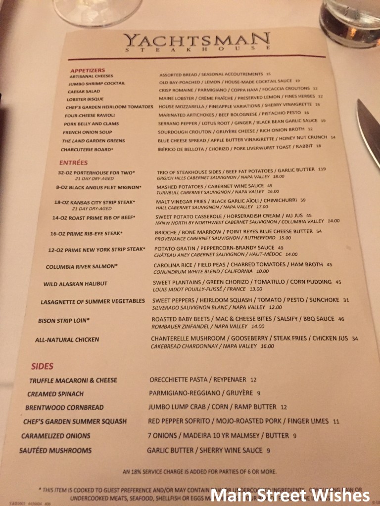 When you are entering the lobby from the side of the boat dock, take a right to get to the Yachtsman. First you will see the Captain’s Grille and to the right of that is a hallway. Follow that hallway and it will take you to the Yachtsman.