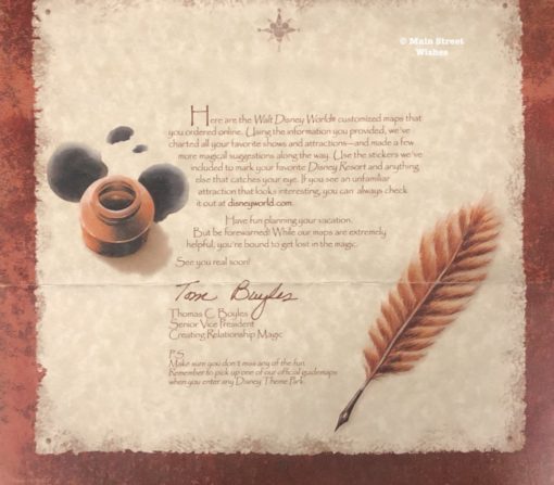 Disney World’s website once had an option where guests could customize maps of the parks. These maps would be mailed to the guest’s home after customization was complete. The maps were printed on thicker paper and they were pretty big, which was a nice feature. On the website guests could include the rides they wanted to experience and leave off things they did not want to do. So it was truly customized to the experience the guest wanted.