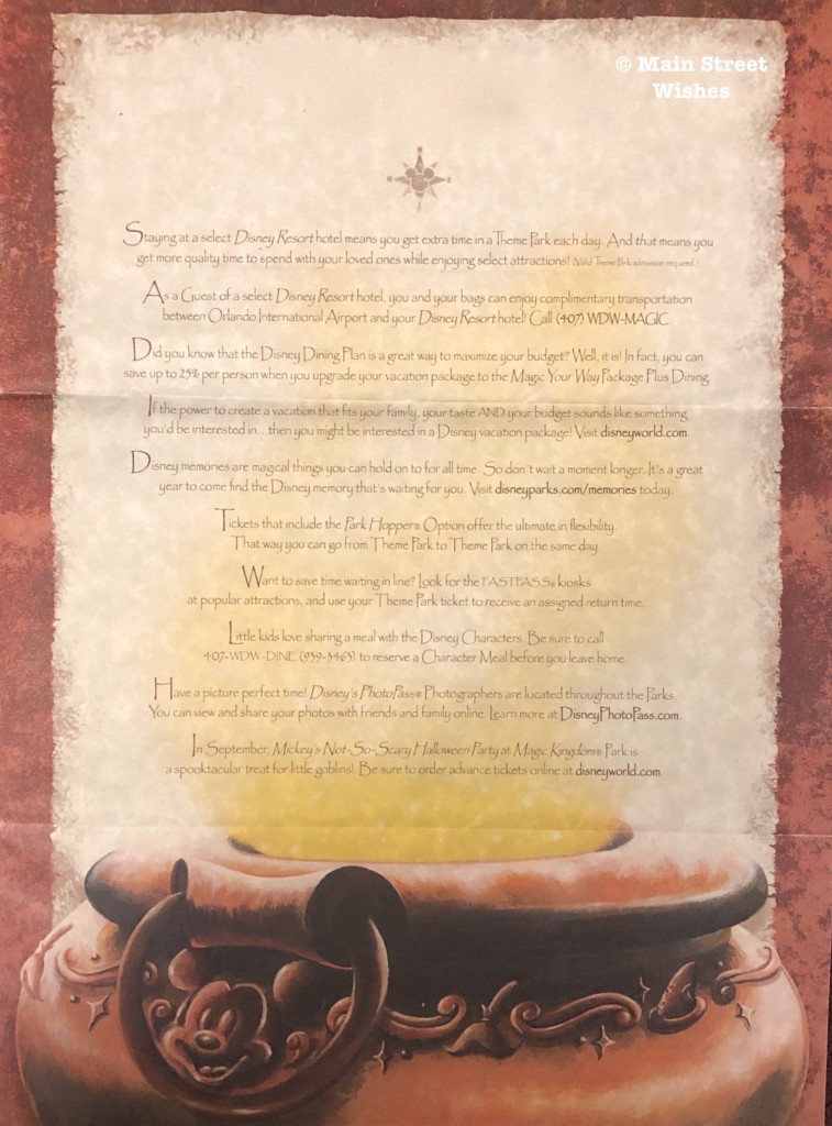 Also included was a letter, as well as suggestions and tips for your trip. The letter mentions stickers that also come in the envelope. Those stickers can be used to mark the areas you want to visit and there’s a star sticker that says “My Resort,” so you can put that one on your resort. This was such a fun way to plan for your trip and they make a good keepsake.